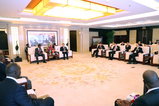 倫古總統與肖亞慶主任等與會嘉賓合影