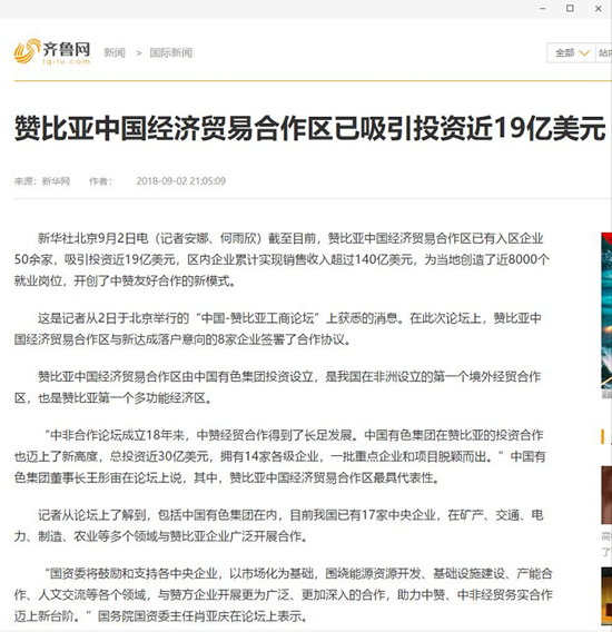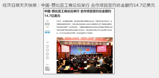 2018年9月2日,由中國有色集團、贊比亞駐中國大使館聯(lián)合主辦的“中國-贊比亞工商論壇”在中國有色集團總部舉行。中非合作論壇成立18年來,中贊經(jīng)貿(mào)合作得到了長足發(fā)展。中國有色集團在贊比亞的投資合作也邁上了新高度,總投資近30億美元,擁有14家各級企業(yè),一批重點企業(yè)和項目脫穎而出。